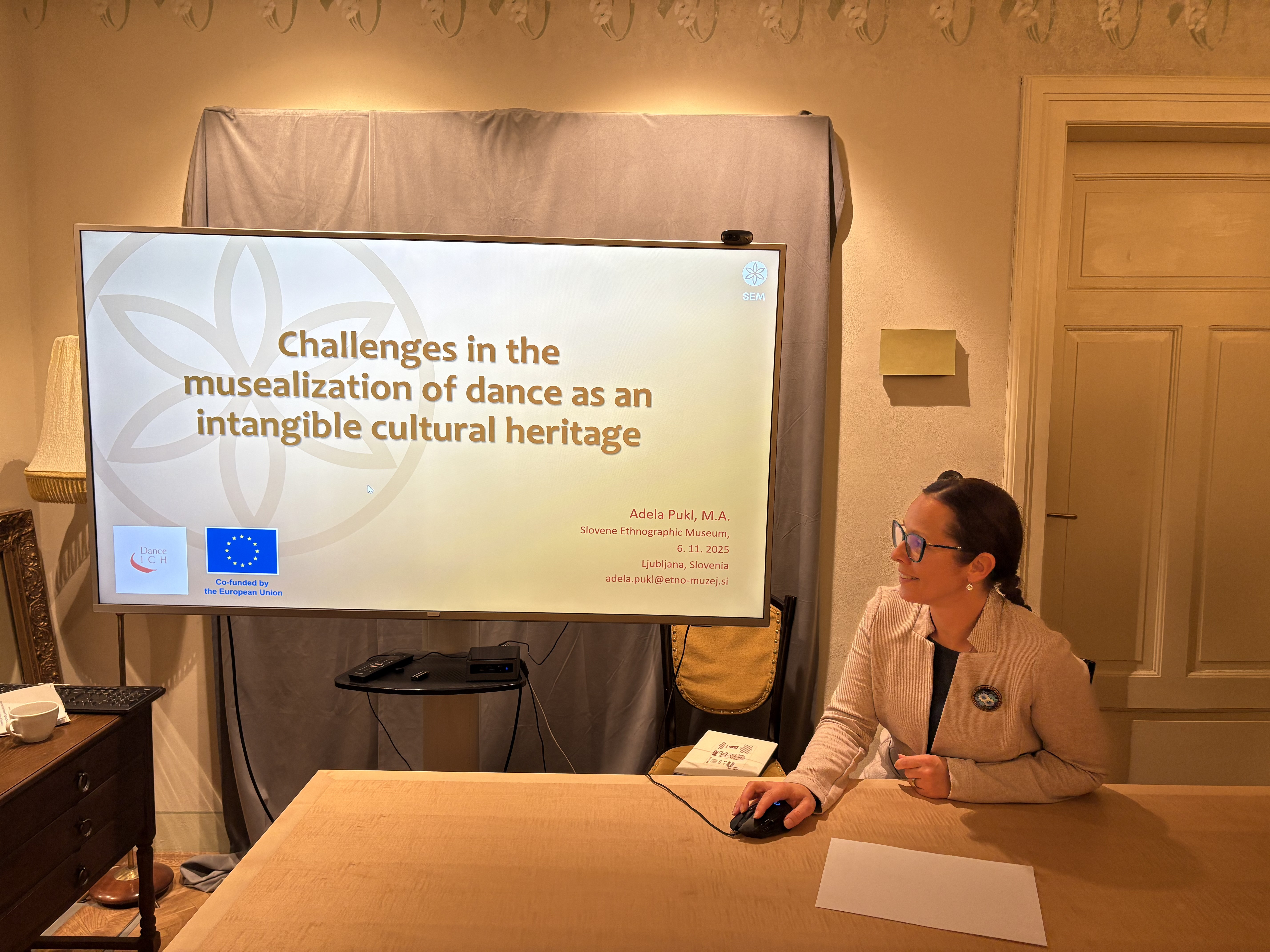 6. novembra 2025 je v Ljubljani potekal mednarodni kolokvij: Interaktivne razstave in digitalna kuracija nesnovne kulturne dediščine v muzejih, ki sta ga organizirala Forum slovanskih kultur (FSK) in Regionalni center za varovanje nesnovne kulturne dediščine JV Evrope pod okriljem organizacije UNESCO iz Sofije. Adela Pukl je v okviru programa Šola SED: NKD in kot predstavnica Slovenije in Slovenskega etnografskega muzeja predstavila varovanje nesnovne kulturne dediščine v Sloveniji s poudarkom na področju plesa in glasbe ter EU projekt Dance – ICH.